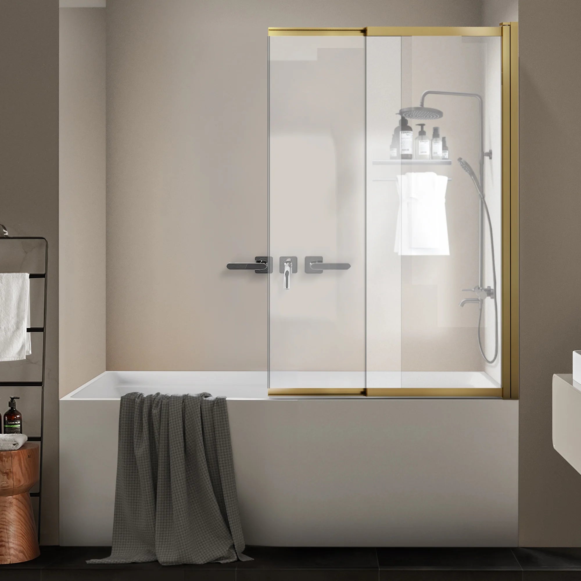 Elegantly framed sliding doors open effortlessly. Each door is equipped with a high rail system, ensuring a secure fit that keeps water where it belongs—inside the tub. Plus, the innovative handle doubles as a convenient towel bar, so your fresh towel is always within reach.
