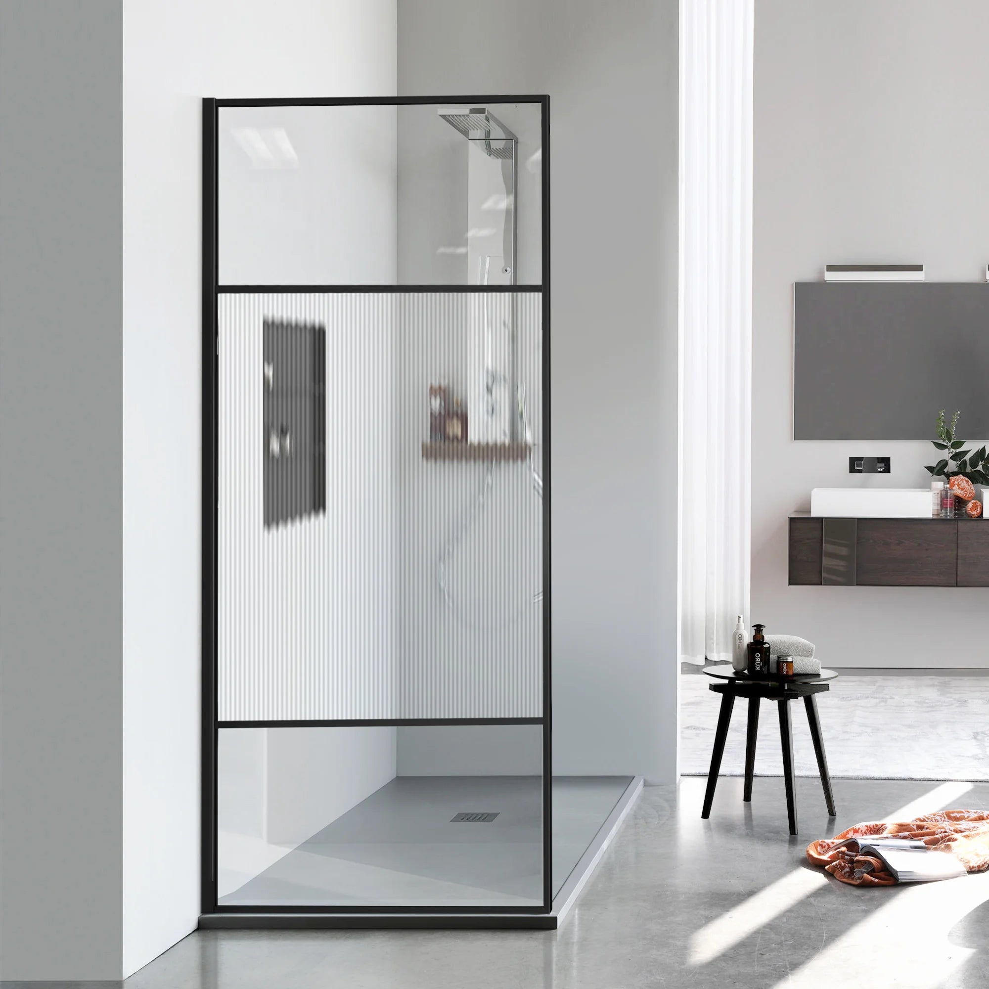 Whether you prefer the textured allure of fluted glass or the subtle sophistication of frosted glass, both options deliver a chic design while ensuring enhanced privacy. Transform your bathing space into a sanctuary of style and comfort.