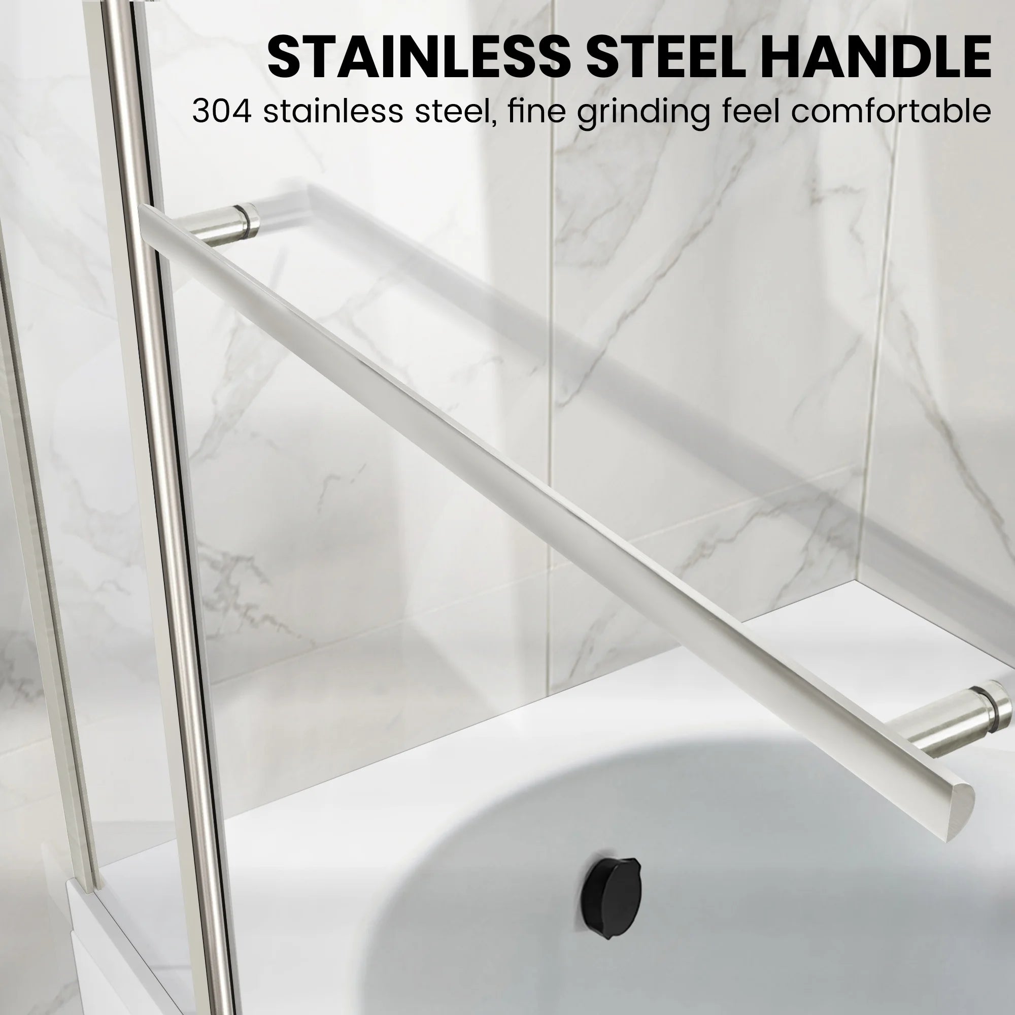 Safety First: The bathroom shower sliding doors are made of 1/4"(6mm) thick clear tempered glass, certified by ANSI Z97.1, with safety protection.