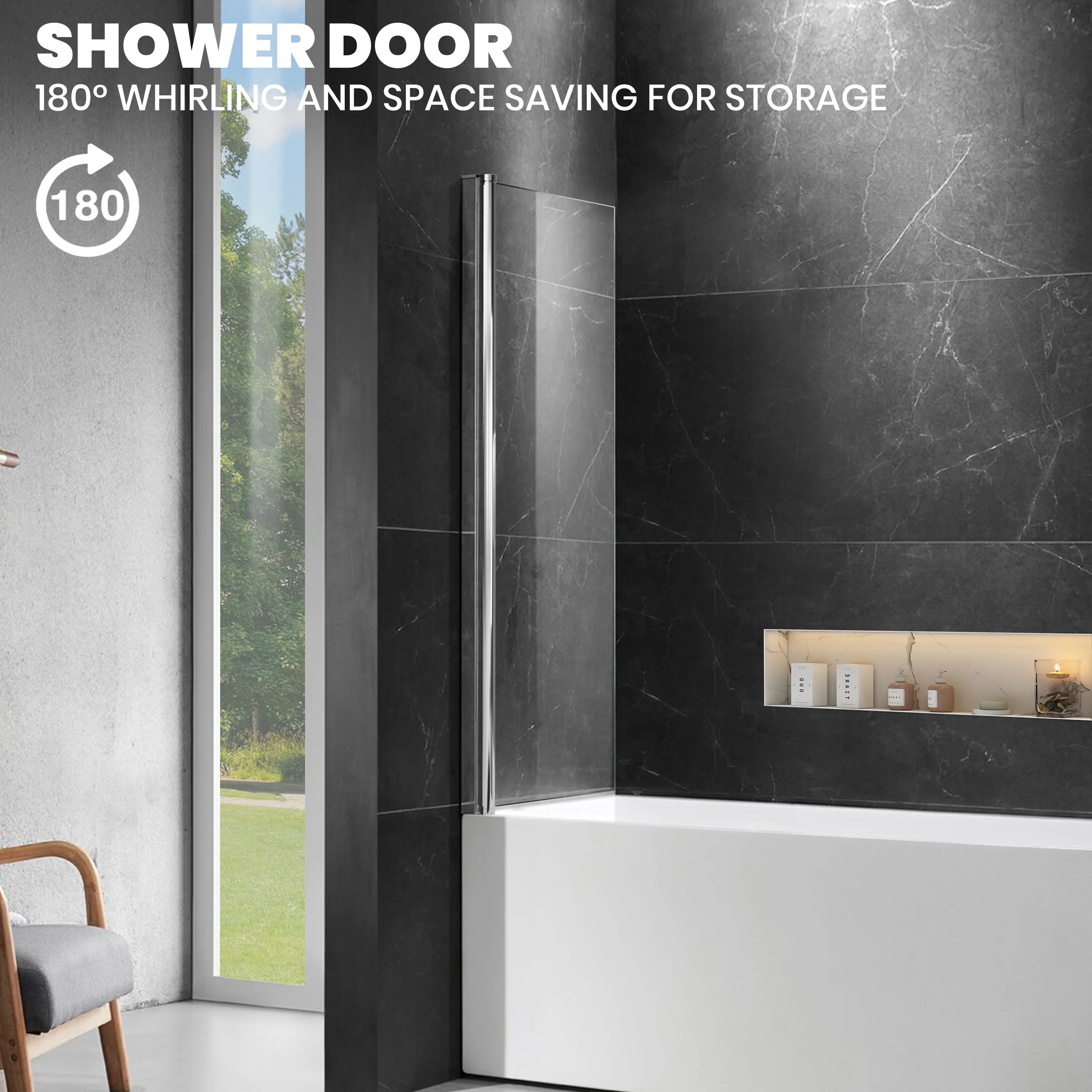 30" W x 55" H Frameless Pivot Bathtub Screen with 1/4" (6 mm) Clear Tempered Glass and 180° Pivoting, Silver