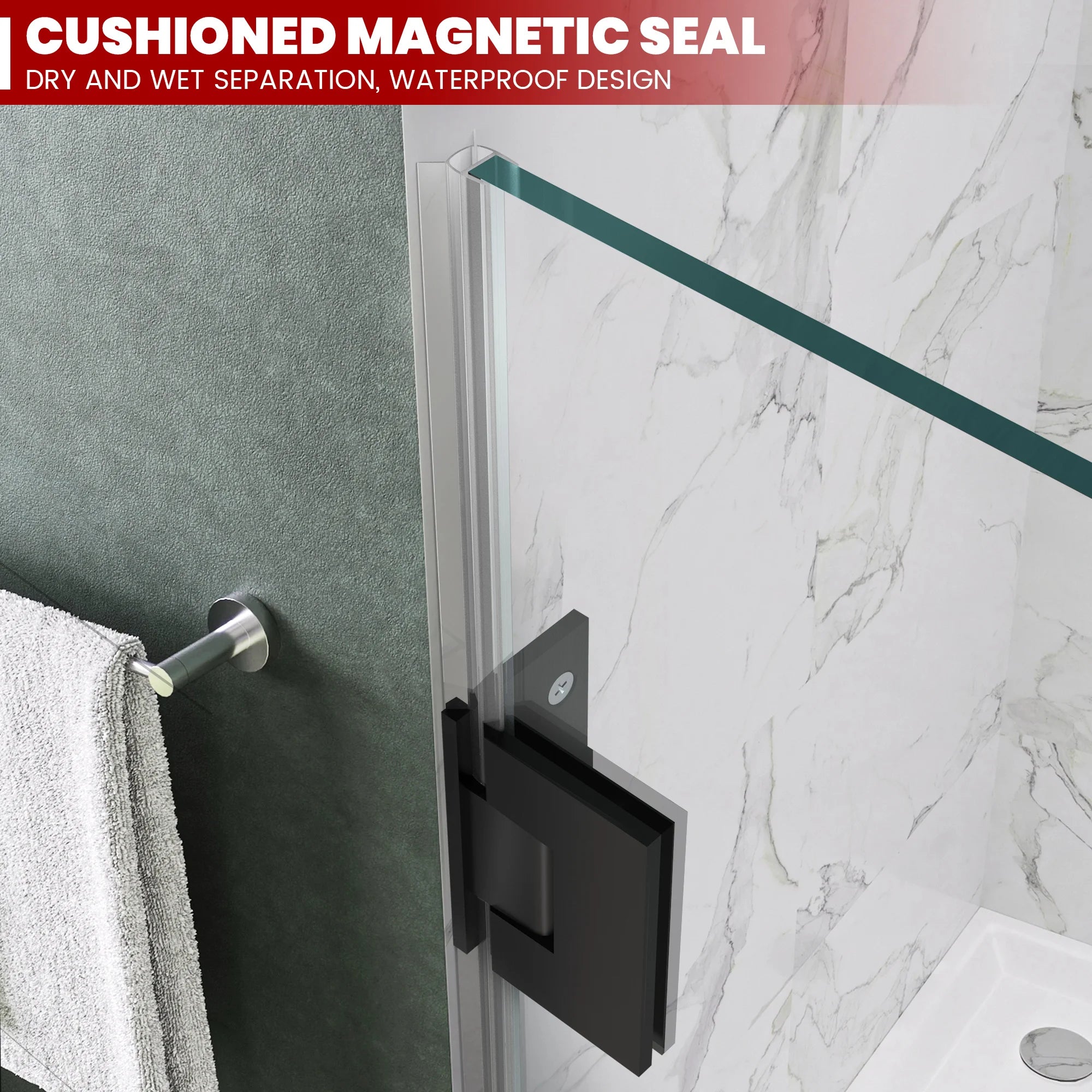 24"/28"/30"/32" W x 72" H Frameless Hinged Shower Door with 5/16" (8 mm) Clear Tempered Glass and Towel Handle, Matte Black