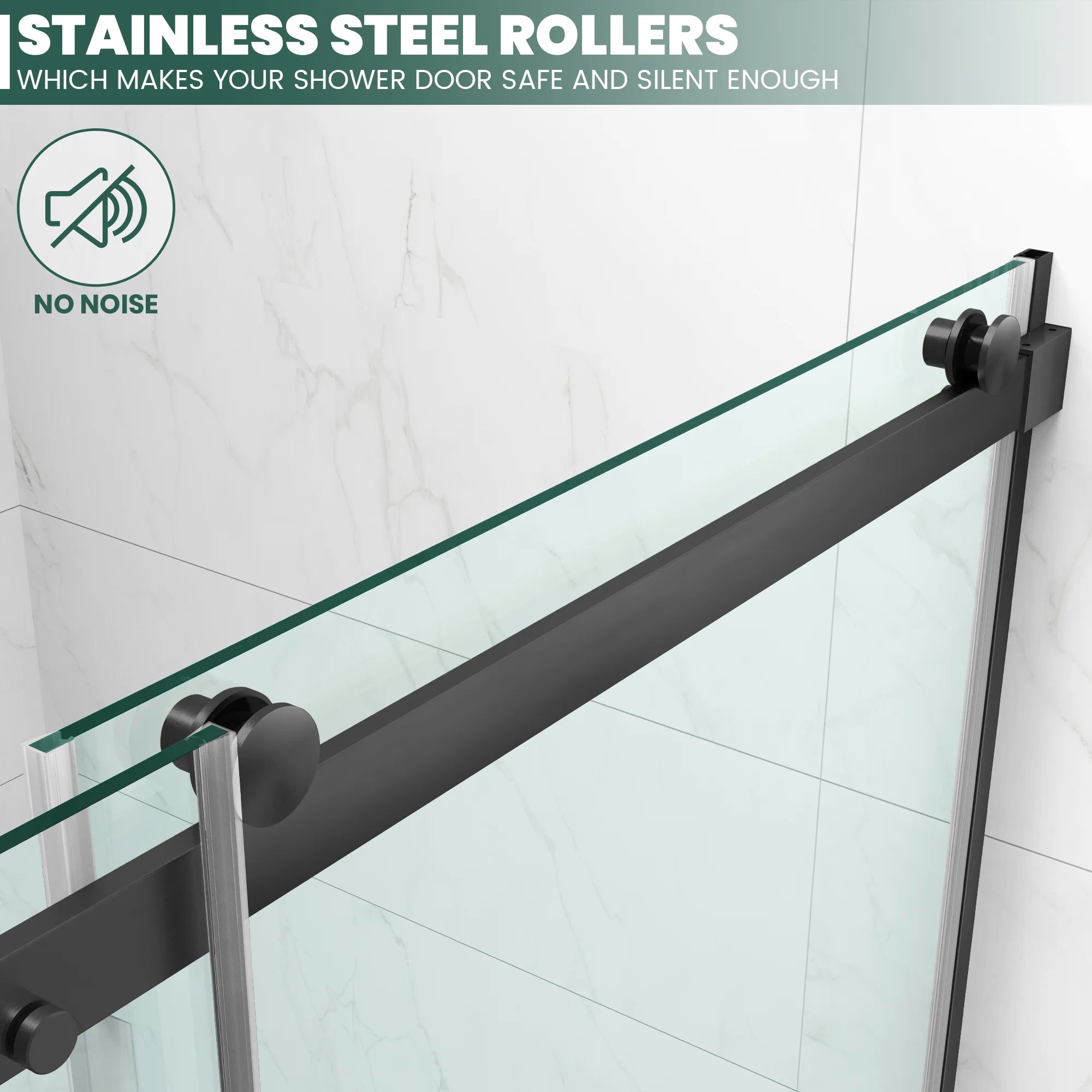 The glass of our Roller Series doors is not only ANSI Z97.1 certified for its safety and durability but also crafted from shatterproof tempered glass to ensure no harmful splinters upon breakage. Additionally, it features a nano-coated surface that repels grime and water, reducing cleaning efforts and keeping your shower spotless with minimal maintenance.
