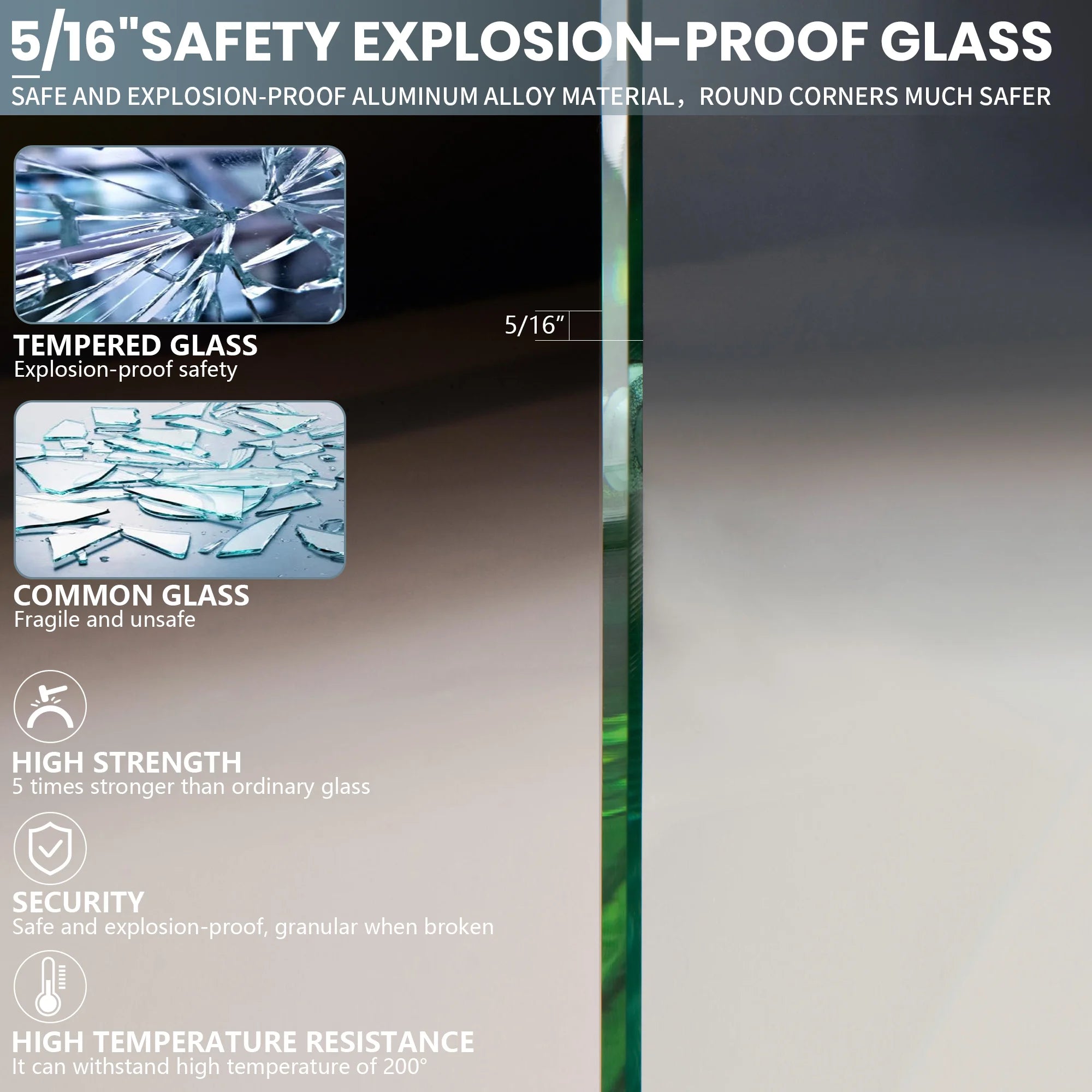 Crafted from 0.3-inch thick, ANSI-certified tempered glass, the clear panel is shatter-resistant for added safety and long-term use. Its high transparency opens up your space, giving your bathroom a brighter and more spacious feel—perfect for those who prefer a clean and classic look.