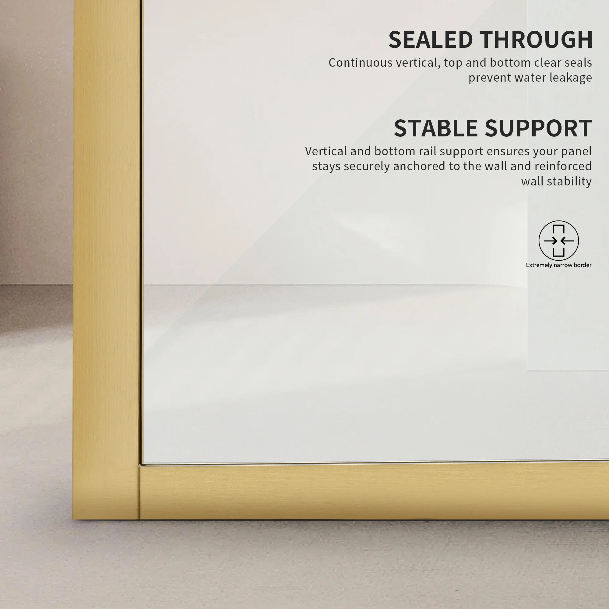 Resilient by Design: Corrosion-resistant hardware and 5/16 inch (8mm) thick glass ensure longevity and aesthetic appeal.