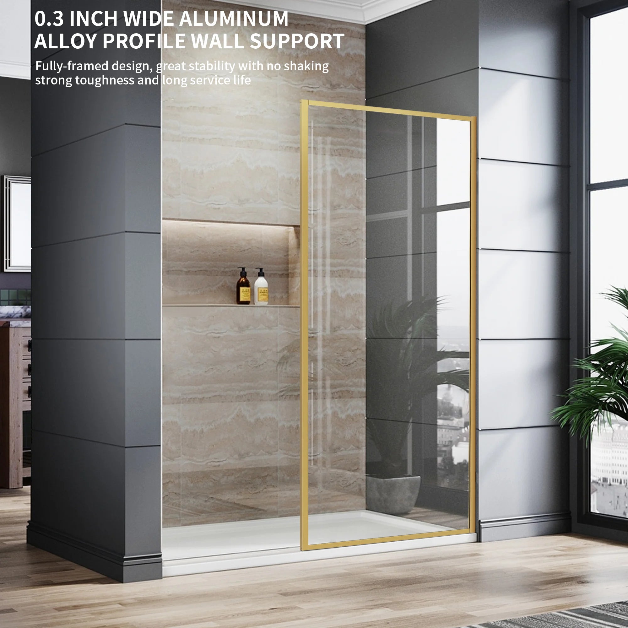 The robust frame features a water deflector and seal that keep water inside the shower space, ensuring you can enjoy a dry and clean bathroom. The vertical and bottom rail support ensure your panel stays securely anchored to the wall, providing reinforced stability and peace of mind. Plus, there is 0.78 inch width adjustment to better suit your space.