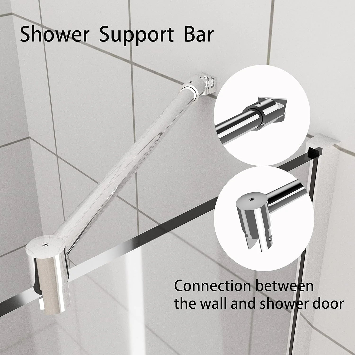 This support bar increases the stability of glass doors by creating a secure triangle between the bar, wall, and glass. This reinforcement helps prevent any wobbling or shaking, ensuring your shower door remains stable and secure for a long time.